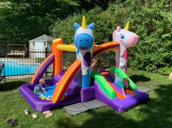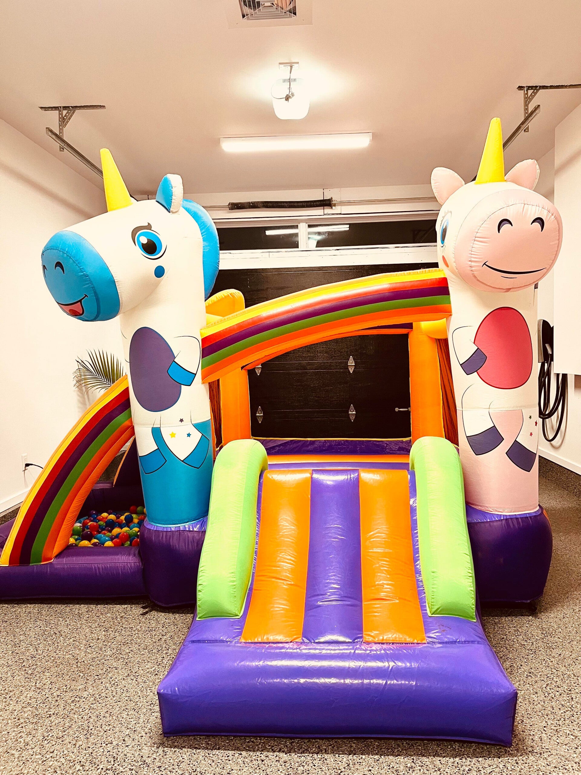Un petit jeu gonflable idéal pour les tout-petits ! Compact, mignon et amusant, il offre un espace pour sauter et un autre pour jouer avec les balles. (2 sacs de balles sont inclus)
